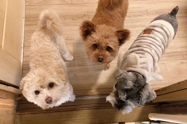 このあと、無事にお部屋にも移動して、マルプーちゃんは遊び仲間のダックスちゃんと