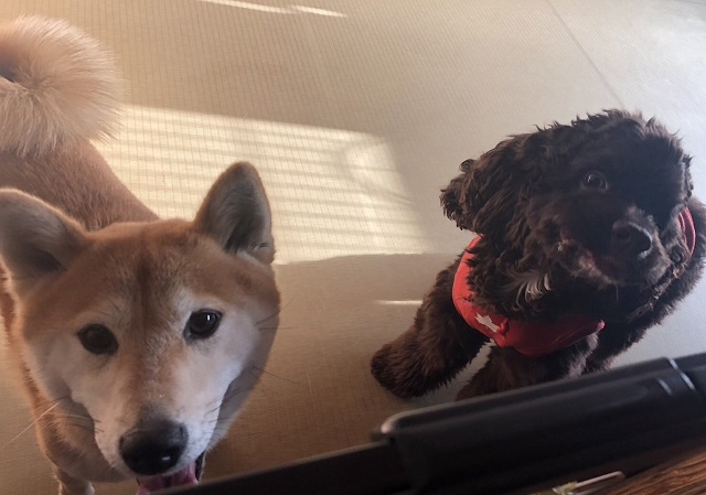 お泊りチームの柴ちゃんとトイプーちゃん、初対面でしたが、数日一緒のお泊りして、