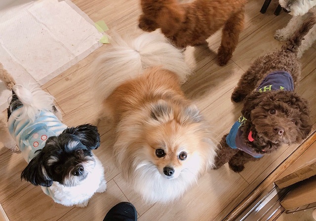 ベテランポメちゃんを真ん中に、新入り後輩ちゃんふたりも、数日間お泊りしているうち
