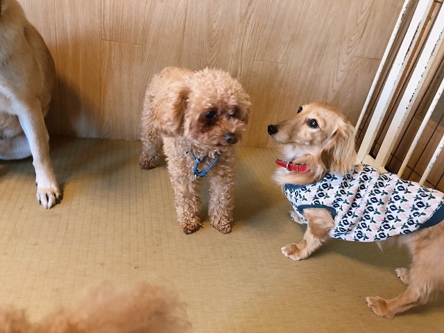 ちょっぴり控え目さんなトイプーちゃん。積極的ごあいさつをしに来てくれたダックス
