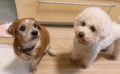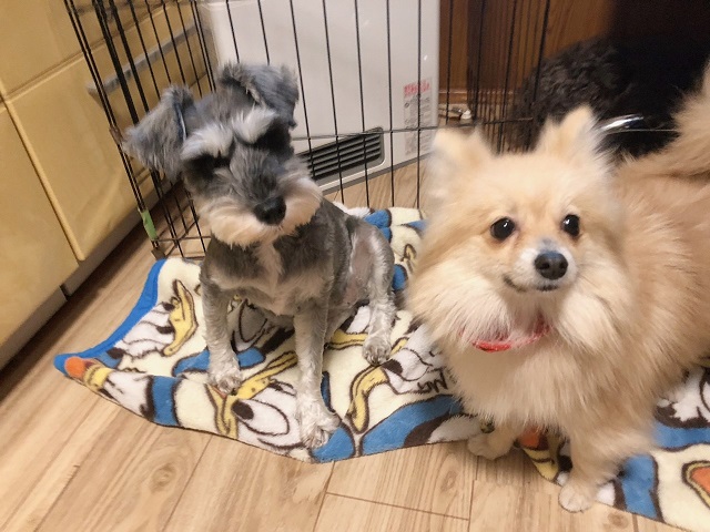 お泊りチームのシュナちゃんとポメちゃん、おふたりで仲良くクンクンし合ったり、
