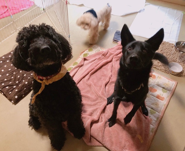 ミックスちゃんとドゥードルちゃんの黒黒コンビさん、なんだかちょっと期待交じりの