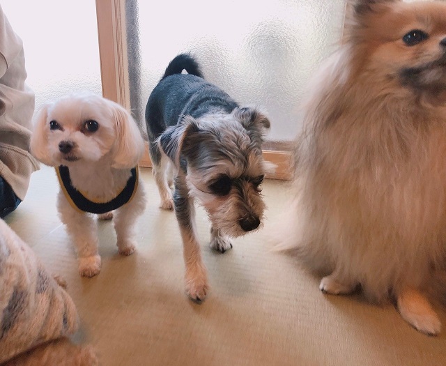 なったり、わんこたちの間を上手に縫って歩けるようになりました。