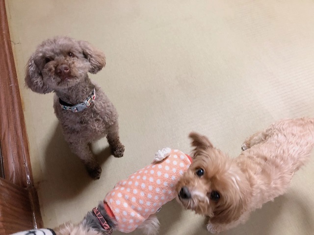 新入りのトイプーちゃんも、最初はちょっと不安げでしたが、時間を過ごしていくうち、