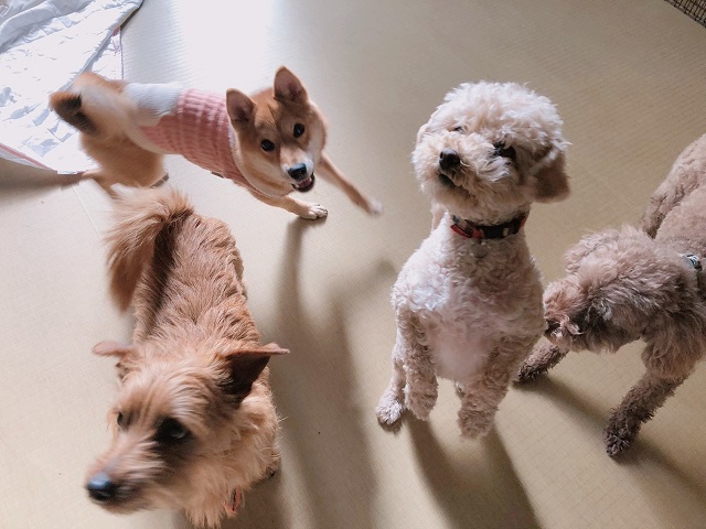人間のことが気にもなるようで(笑)わんこたちとクンクンしてみたり、合間に