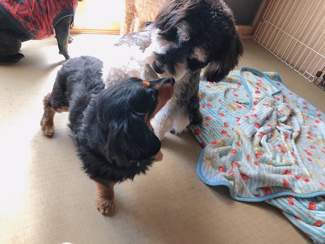 ダックスちゃんに、シュナちゃんもすっかり安心して遊べているようでした。