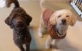 前足でちょんちょん、と遊びを誘うシュナちゃん、同じく遊びがとっても大好きなダックスちゃん