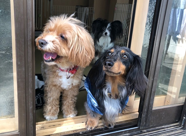 超ベテランのキャバプーちゃんとダックスちゃん、おふたり揃ってしきりにクンクン、
