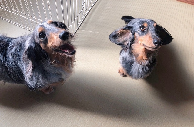 ダップルのダックスちゃんおふたり、なかなか揃うこともないので、一枚いただきました。