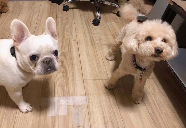 お顔は真剣、ですがシッポは全力でフリフリ(笑)大きな瞳で見つめるおふたり。