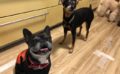 最近仲間入りしてくれたゴールデンちゃん。年上のミニピンくんとご対面。最初は体勢を