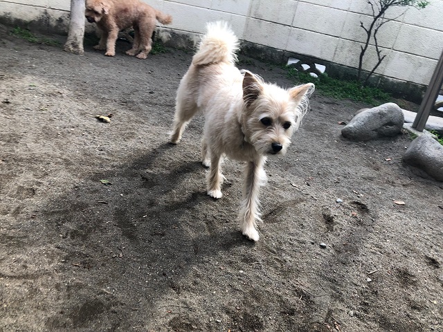 お天気の日には毎朝恒例のお庭散策。今回初お泊りのミックスちゃんも、すっかり環境に