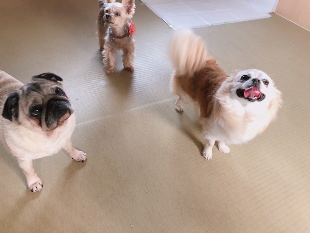 ルームメイトのマイペースパグちゃんや先輩ヨーキーちゃんたちとも、すっかり馴染んで