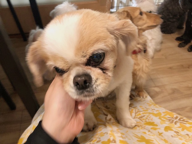 人間のなでなでが大好きなペキニーズちゃん。普段はこぼれんばかりの大きな瞳ですが、