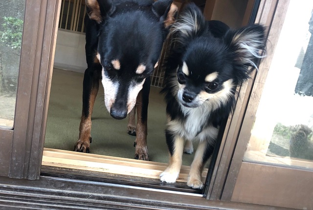 しばらくおあずけになりそう。窓辺からお庭チェックをしているおふたりがいたので、