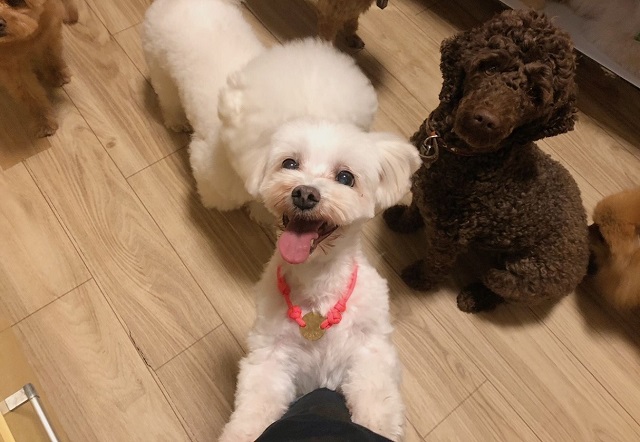 初お泊りのマルチーズちゃんが笑顔でリポートしてくれました。そして、その横でちょっと