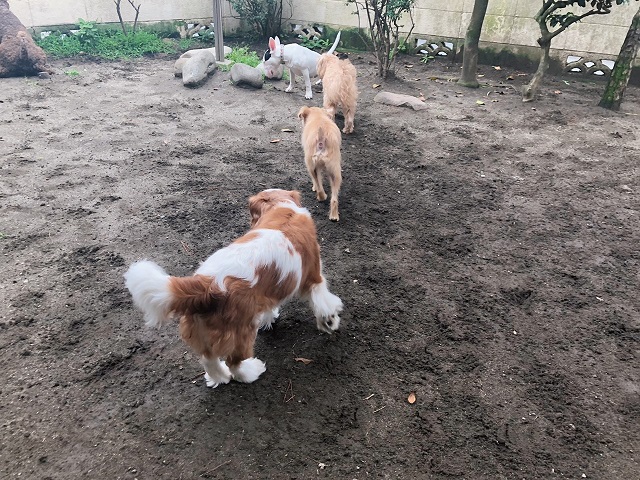 お庭のある一軒家のペットホテル、本日もいろんな顔ぶれさんが集まってくれて、みんなでわいわい