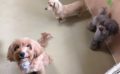 すっかりくつろいでいたキャバちゃんとドゥードルちゃんですが、人間の動きから