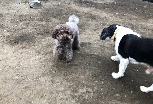 毎朝恒例の気ままにお庭タイムを。ちょっと長いお泊りのトイプーちゃんも、トコトコと