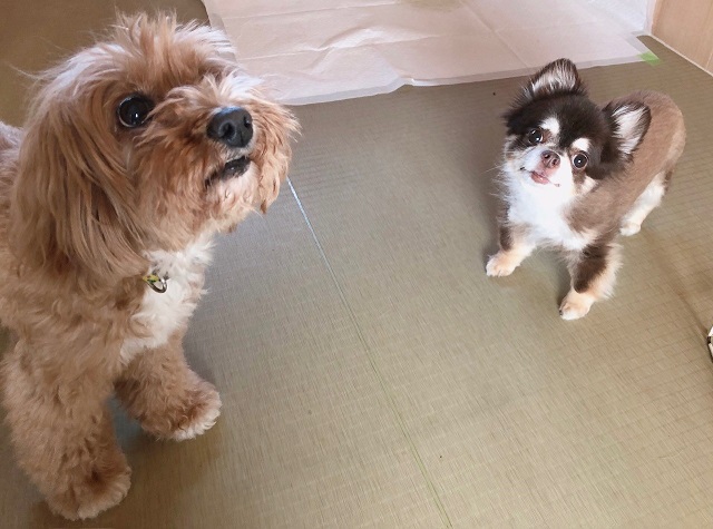 ベテランキャバプーちゃんと、お久しぶりのお泊り滞在のチワワちゃん。シニアチームの