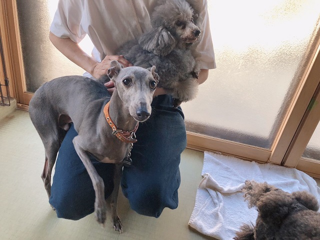 イタグレちゃん。トイプーちゃんはすでに抱っこされてすっかりご満悦のご様子ですが(笑)