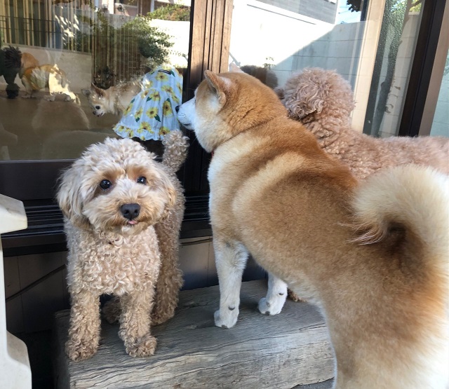 控えめなトイプーちゃんは、そんな様子を横目で見ながら、可愛く佇んでおりました。