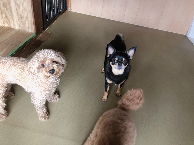 ちょっと長いお泊りチームのトイプーちゃんとチワワちゃんも、おはようのごあいさつを