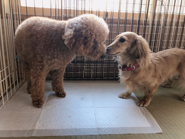 ”はじめまして”とクンクン、それに応えるようにトイプーちゃんもクンクン。