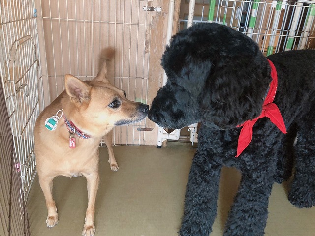 とっても心優しいドゥードルちゃんとミックスちゃん。数日間一緒にお泊りしていたので、