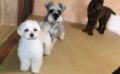 先輩フラットちゃんに積極的ごあいさつ中のドゥードルちゃん兄弟。
