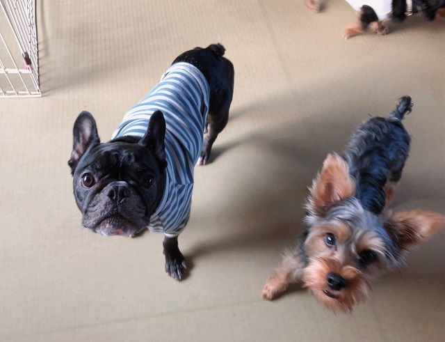 初対面だったフレブルちゃんとヨーキーちゃん。最初はちょっと距離を取りながら、