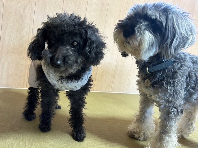 とってもキュートなシニアトイプーちゃんとシュナちゃんコンビ。なんだか、穏やかな