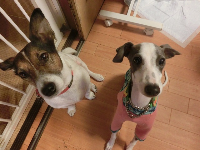 美男美女コンビ。しっかりカメラ目線ですね(笑)イタグレちゃんは初めてのお泊り。