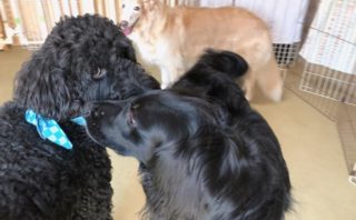 レッドの子はちょっぴり長い滞在中、奥の子はわんこのうち一番のベテランさん。おふたりとも、とてつもなく