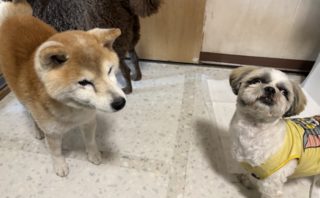 いつもハイパー元気なジャックちゃんとちょっぴり控え目なイタグレちゃん。朝ごはんも終わって、