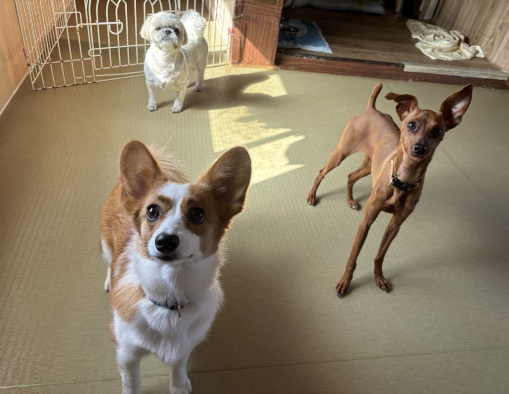 それに続き、いつもは控え目さんなシーズーちゃんもシッポフリフリ、ミニピンちゃんも立派な