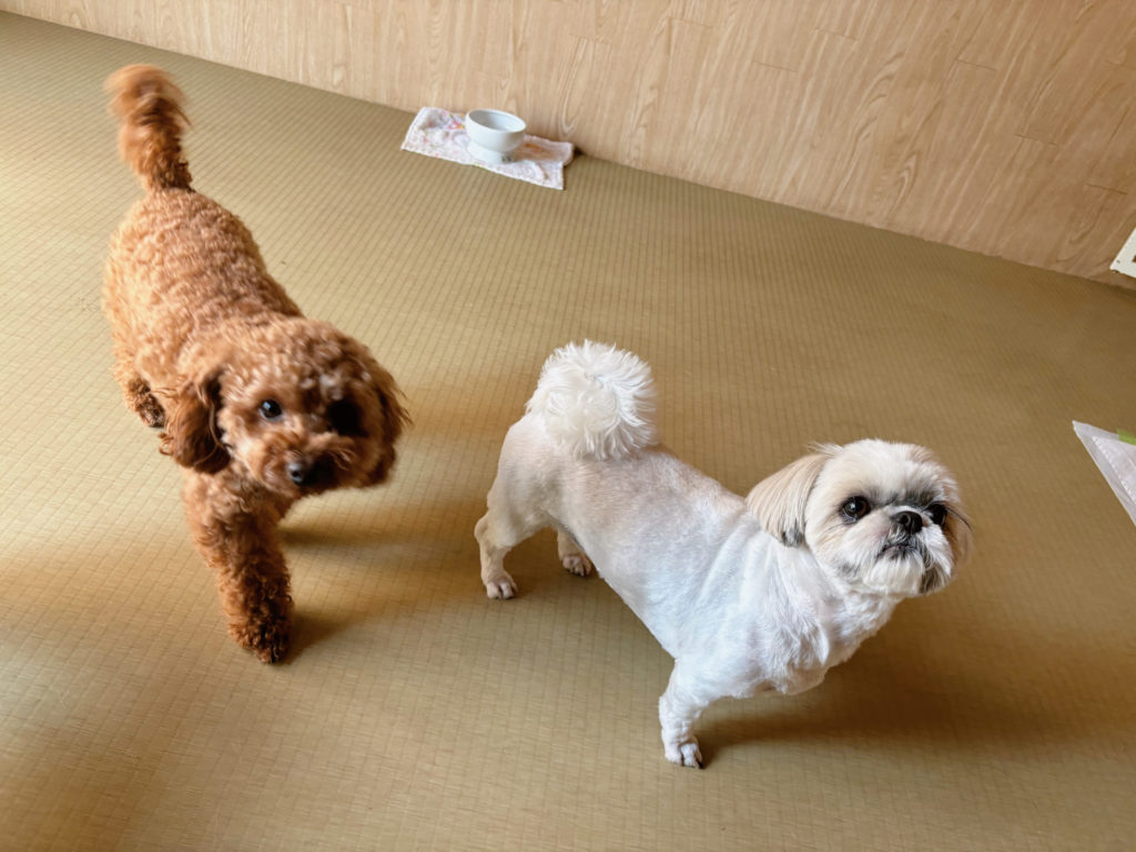 朝の一通りが終わったので、だんだんお部屋の空気も落ち着き、いつものまったり時間に。控え目シーズーちゃん
