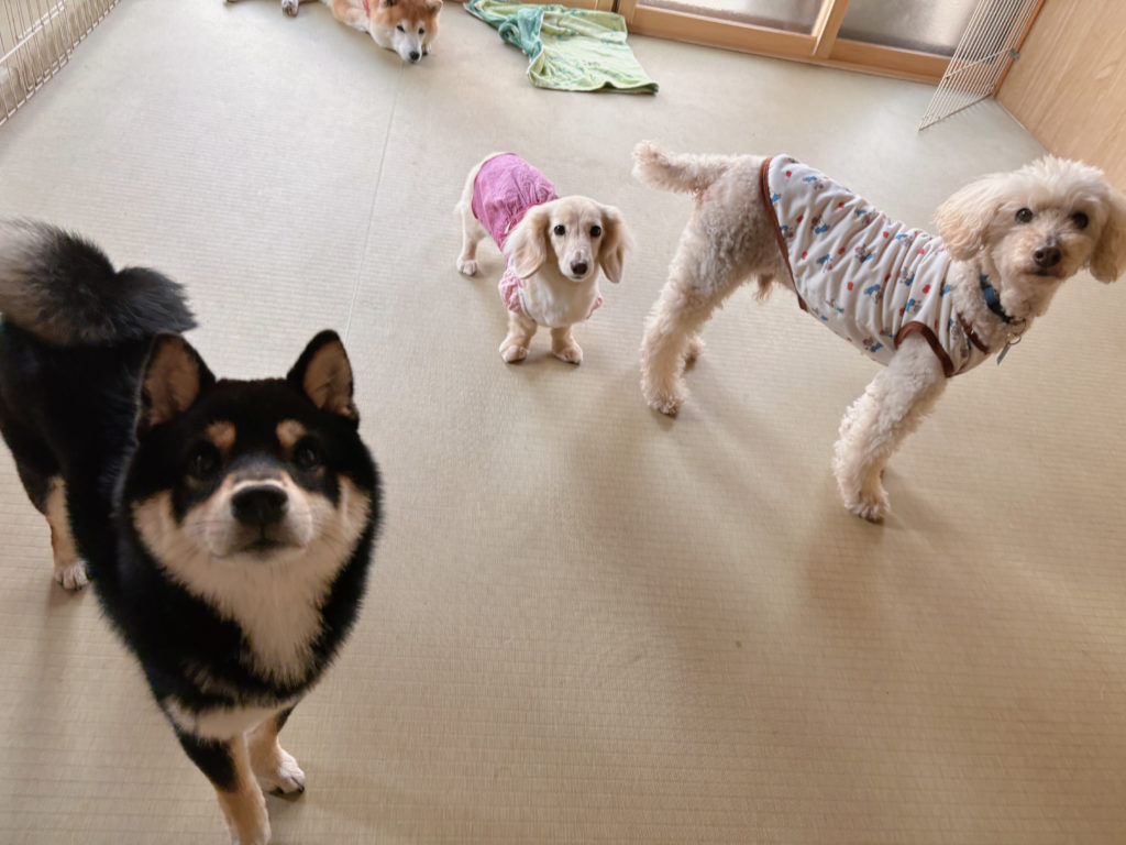みんなの動向を眺めていたり、ダックスお嬢様はこれからお昼寝タイムに、トイプーちゃんは