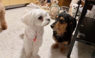 ベテランシュナちゃんコンビさんがご対面。おふたりとも、とってもマイペースでのんびり屋さん。
