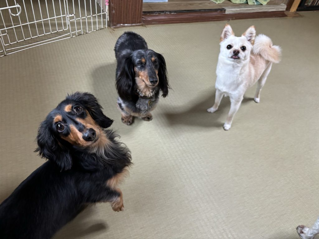 お泊りチームのダックスちゃんコンビとミックスちゃん、それぞれお久しぶりの再会だったりはじめまして