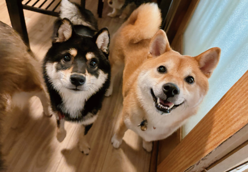 右の赤の子は慣れっこのベテラン柴さん、左のヤングちゃんは最近仲間入りしてくれた後輩ちゃん。