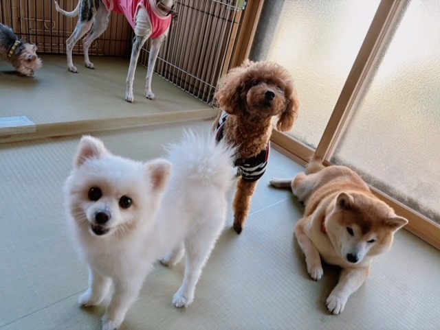 いつも来てくれるベテランポメちゃんに、ちょっとお久しぶりのトイプーちゃん、そしておねむモード?