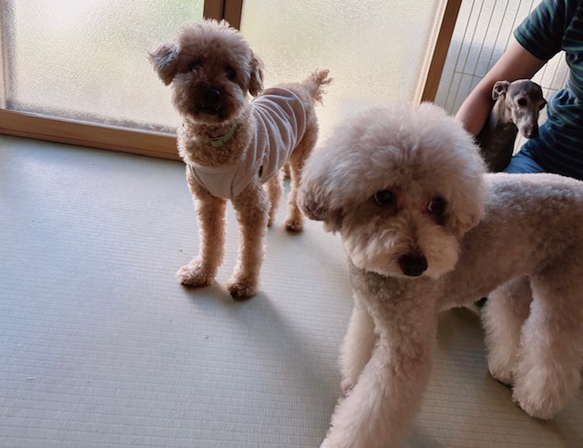 マイペースなトイプーさんたち、お部屋をウロウロしてチェックしたり、ルームメイトたちとクンクン