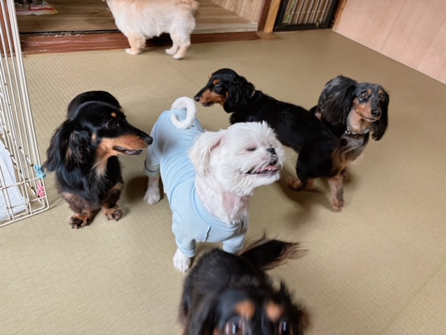 ここ数日は、黒ダックスちゃん祭りになっていて、そんな中ひとり真っ白のミックスちゃんが(笑)