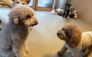 ちょっぴり長い滞在中のコッカーちゃんと、今回はじめてのお泊りのミックスちゃん、コッカーちゃんは