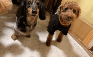 少し控え目なトイプーちゃんと天真爛漫なスピッツくん、どうやらスピッツくんが「はじめましてのご挨拶」をしようと、トイプーちゃんの様子を見ながら、少しずつ近寄っています。トイプーちゃんは、そんな気配を感じながら、他の仲良したちがお庭を走り回っているのを見ながら、自分も参加しようか?どうしようか?を考えているところ・・・天真爛漫なスピッツくん、いつもなら「遊ぼうよ!」とばかりに、すぐに近づくいて行くのですが、トイプーちゃんのことがよほど気になるようで、ちゃんと様子を伺いながら慎重に対応してくれています。スピッツくんの優しい気づかいを察してくれたのか、トイプーちゃんも優しく「こんにちは!」と答えてくれました。なんとも二人の相手を気遣う優しさあふれるやり取りが、とっても素敵であたたかな時間の流れでした。お互いの相手の気持ちをちゃんと考えながら行動できるって、とても素晴らしいでよね!私たち人間も忘れてはいけない大切な事を、今日もワンちゃん達から気づかせてもらえました。みんないつもありがとう!