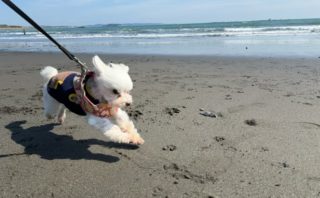 このあと、お座り、マテ、の合図でちょっとリードを伸ばして走りタイム。人間とのアイコンタクトも