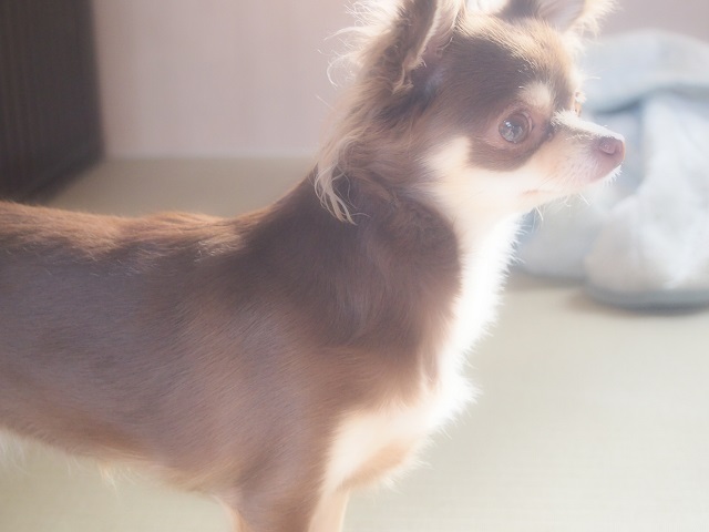 <くつろぎの一軒家、湘南茅ヶ崎のペットホテル>ふんわり 店舗ブログ 2014.12.22 きれいなチョコレート色のチワワちゃん。朝日に照らされて、毛並のふわふわ感がより一層際立ちます。 こういう時はついつい、ポートレート的に、そしてアップで撮りたくなってしまうもの。 チワワちゃん特有の小さいお鼻に短めのマズルが何とも!可愛すぎて見とれてしまいます(^^) 湘南のペットホテル、アットホームな日当たりの良い一軒家、今日もゆっくり時間が流れていきます。