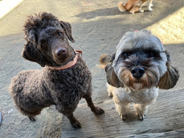 後ろでは、柴姉さんが日向ぼっこをしていたり、まだお外にいたいチームの子たちが気ままにお庭タイムを