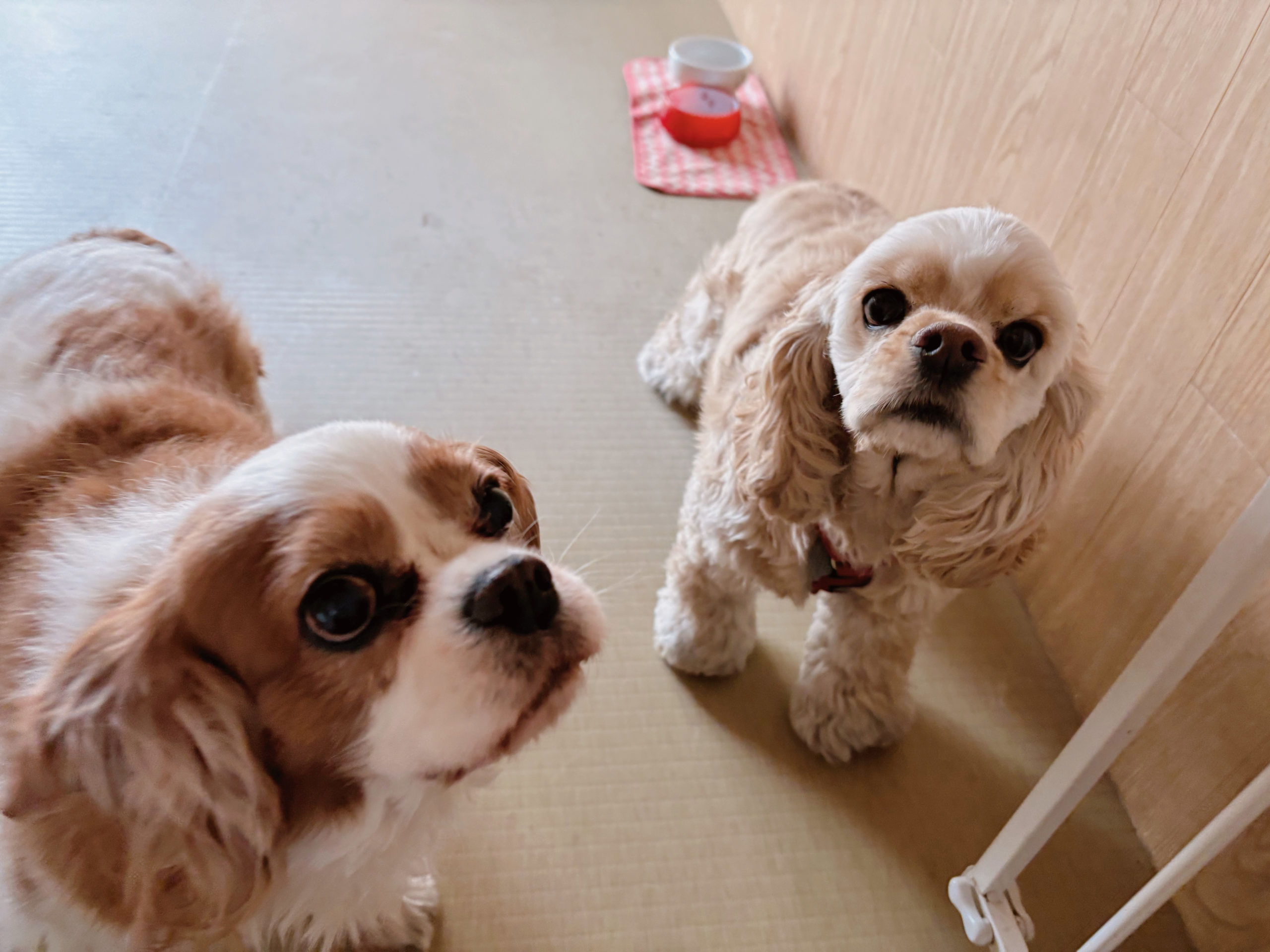 先輩のキャバさんと、新入りさんのコッカーちゃん。おふたりとも、とってもおっとりしていて、